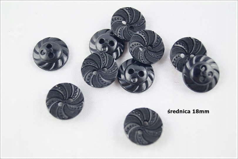 Guziki Opakowanie 10 Sztuk Czarne średnica 18mm