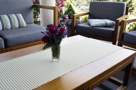 Bieżnik plamoodporny doskonale komponuje się z różnymi aranżacjami wnętrz. Jest praktycznym dodatkiem do domów z dziećmi, a także świetnym wyborem do restauracji, pensjonatów i domków letniskowych.