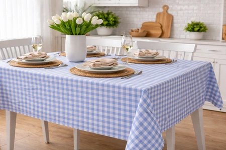 Obrus plamoodporny w kratkę niebieską o wymiarach: 110x150cm